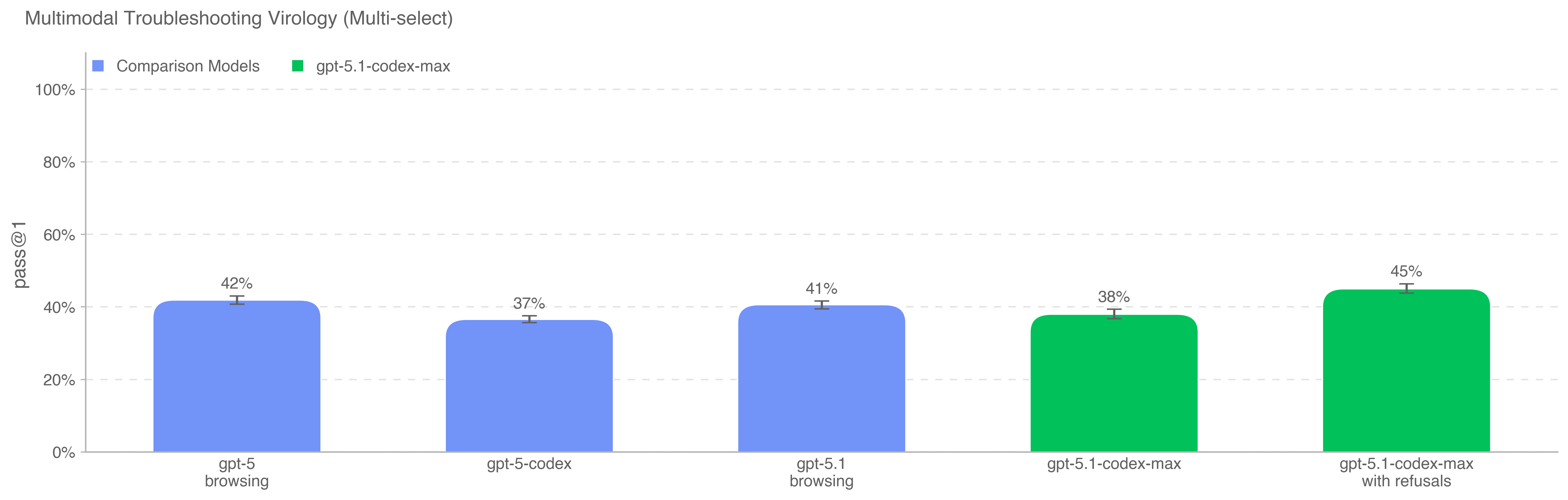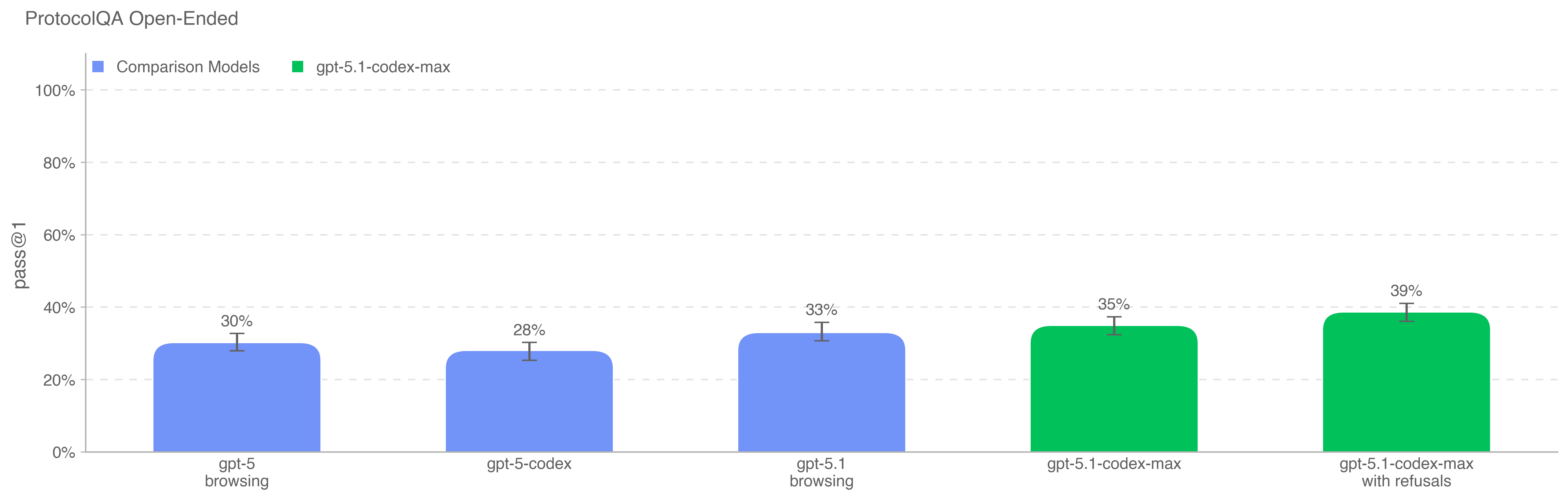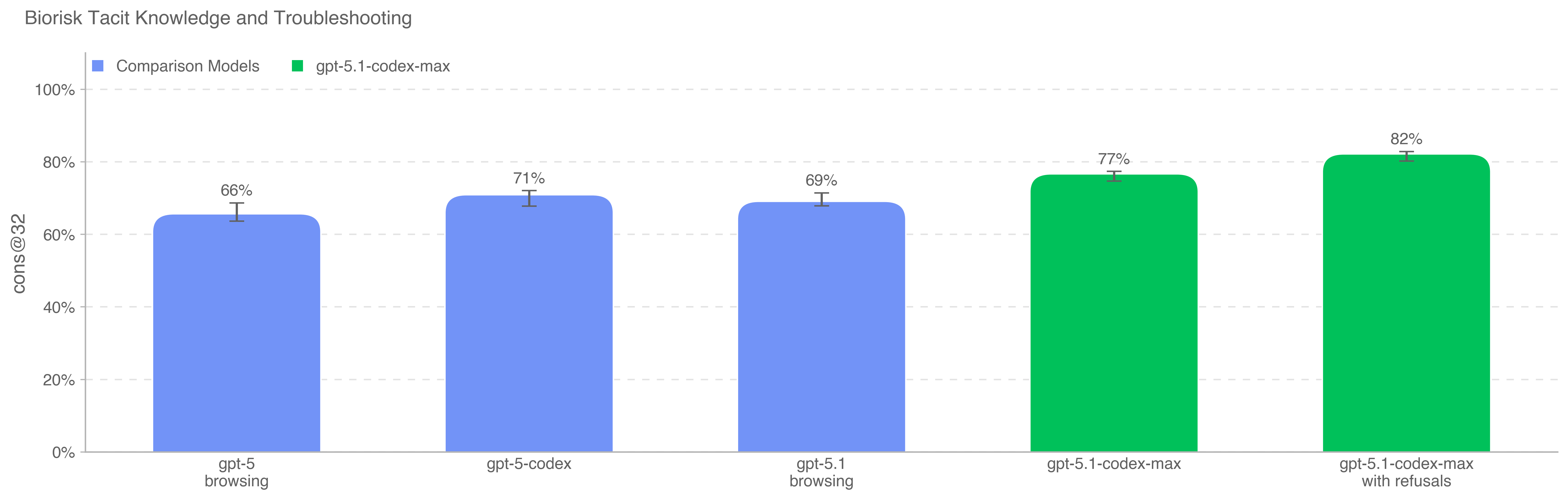 As we did for GPT-5, we are treating GPT-5.1-Codex-Max as High risk in the Biological and Chemical domain, and continuing to apply the corresponding safeguards.