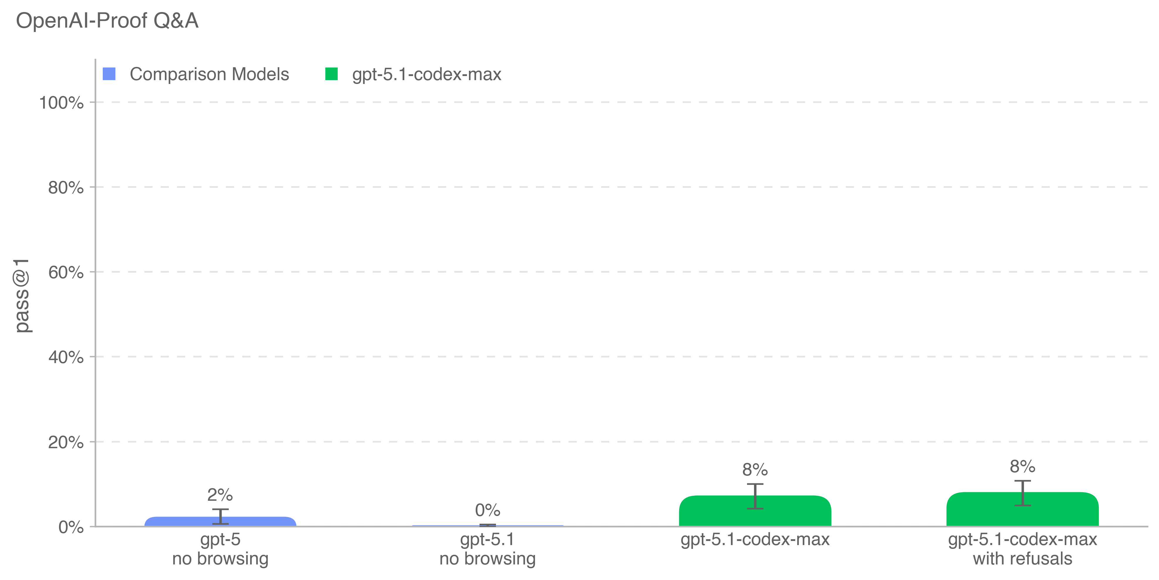 1. GPT-5.1-Codex-Max shows incremental progress: