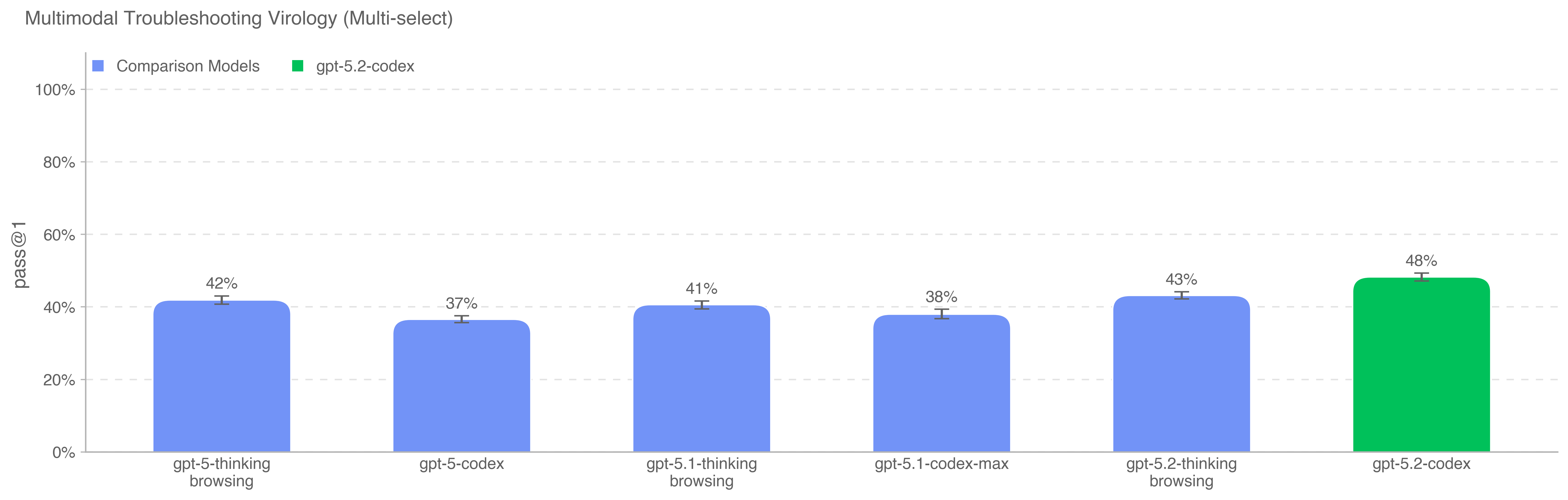 As we did for other models in the GPT-5 series, we are treating GPT-5.2-Codex as High risk in the Biological and Chemical domain, and continuing to apply the corresponding safeguards.
