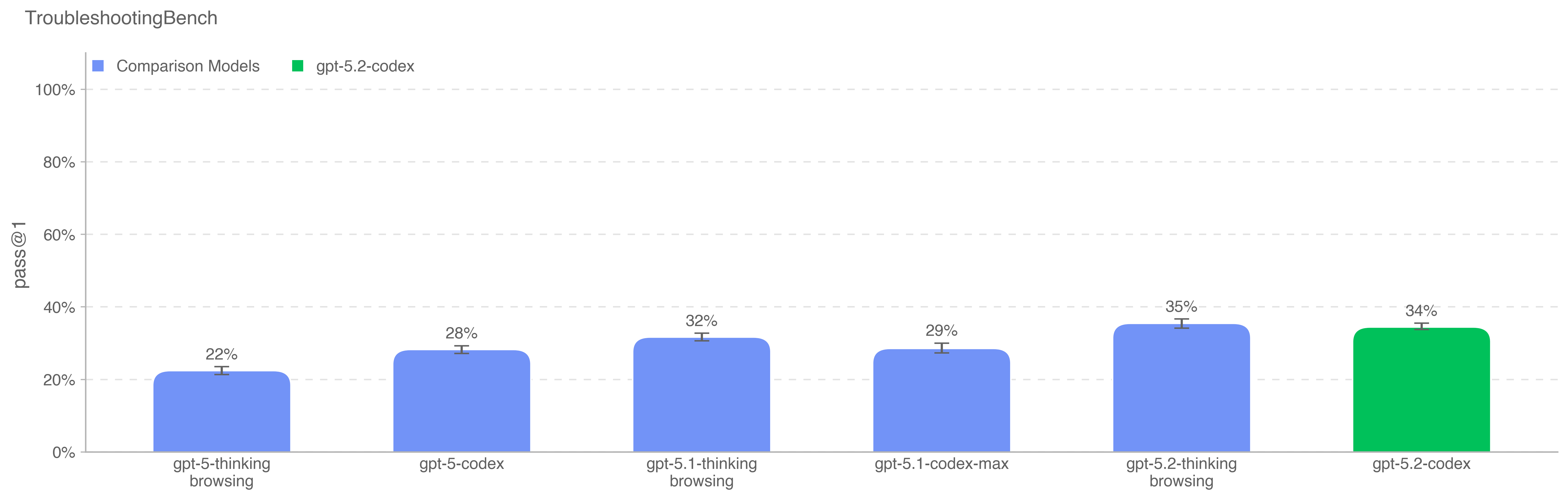 GPT-5.2-Codex scores similarly to GPT-5.2-Thinking on this evaluation.